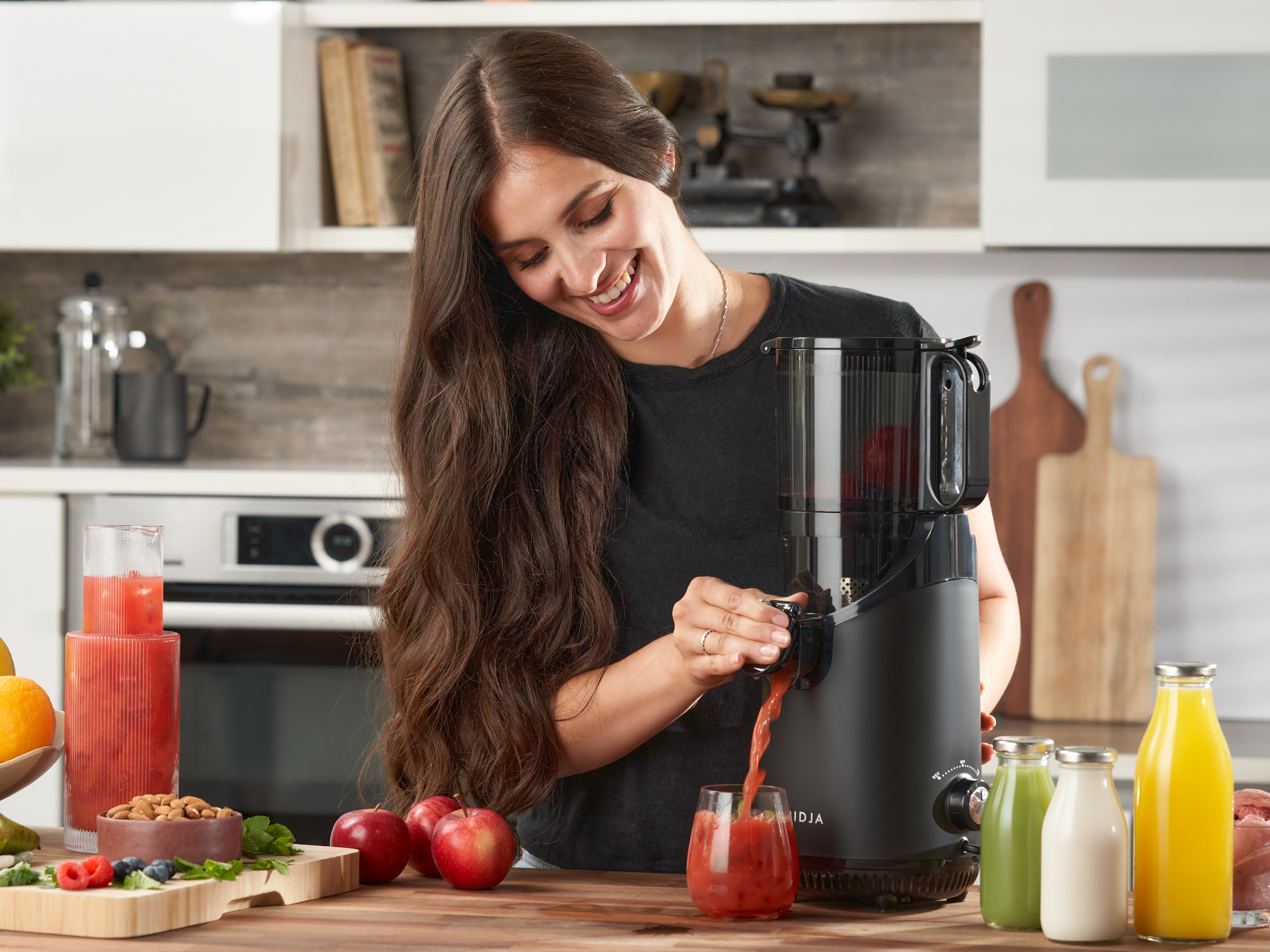 Our juicing collection includes the Fridja f2500 Self-Feeding Whole Fruit Juicer and the Fridja f1900 Whole Fruit Juicer for cold-pressed nutrition, plus the Fridja f800 and Fridja f900 — automatic citrus juicers designed for effortless orange, lemon and lime juicing with a single touch. If you’re looking for a portable blender for smoothies, the Fridja f500 is lightweight, USB rechargeable and ideal for daily use.